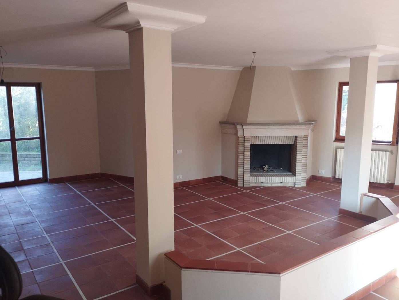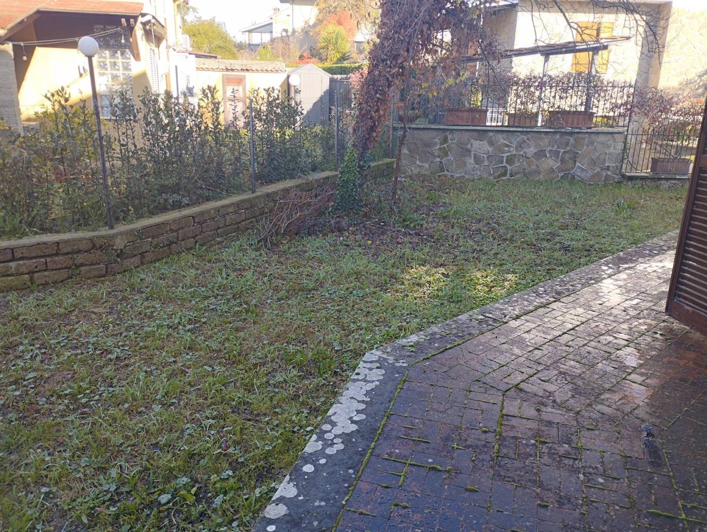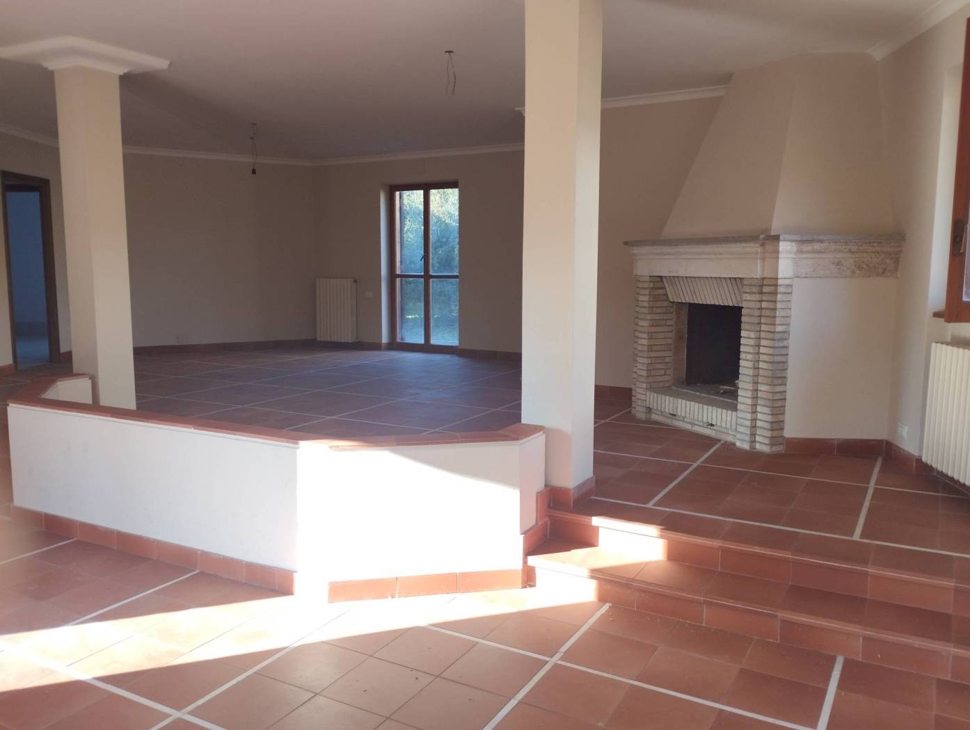 Entrando nella villa, dopo aver percorso un bellissimo giardino, ci troviamo al piano terra dove si apre a noi un grande salone con camino, una cucina con finestra che affaccia sul giardino, un disimpegno, una camera da letto con armadio a muro e bagno con box doccia.